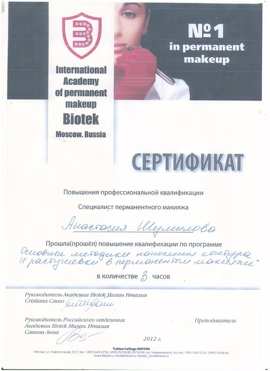 - Базовое обучение по перманентному макияжу Школа "Биотек".